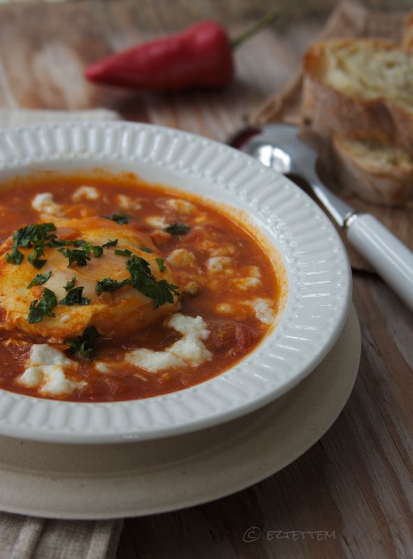 *csípős, római köményes paradicsomszósz buggyantott tojással, gyakran valami sós sajttal - tipikus reggeli étel Tunéziában, Marokkóban, Líbiában és Algériában. pitával adják, hogy legyen mivel mártogatni.